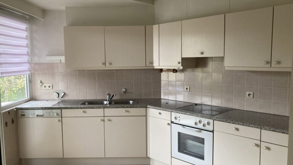 -Ingerichte keuken met tegelvloer ( ijskast, oven, vaatwasmachine, elekr.kookplaat en dampkap)